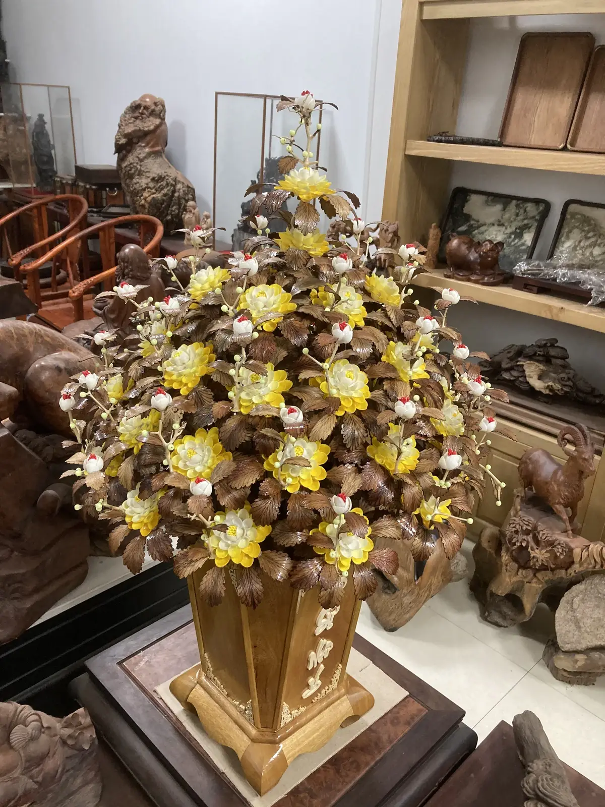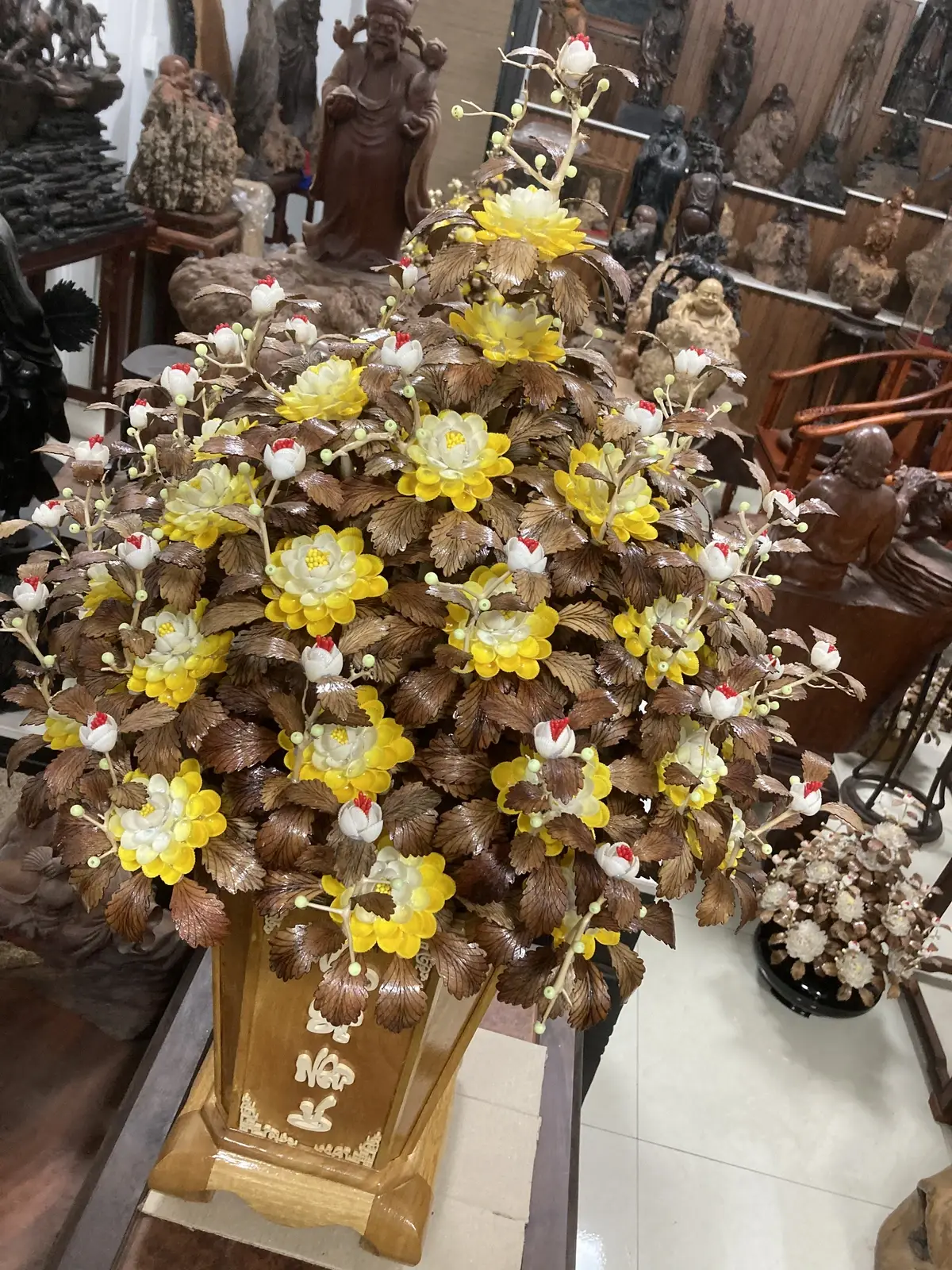 Bình Hoa Mai Vàng – Lá Gỗ Sưa, Bình Gỗ Cẩm Vàng G12