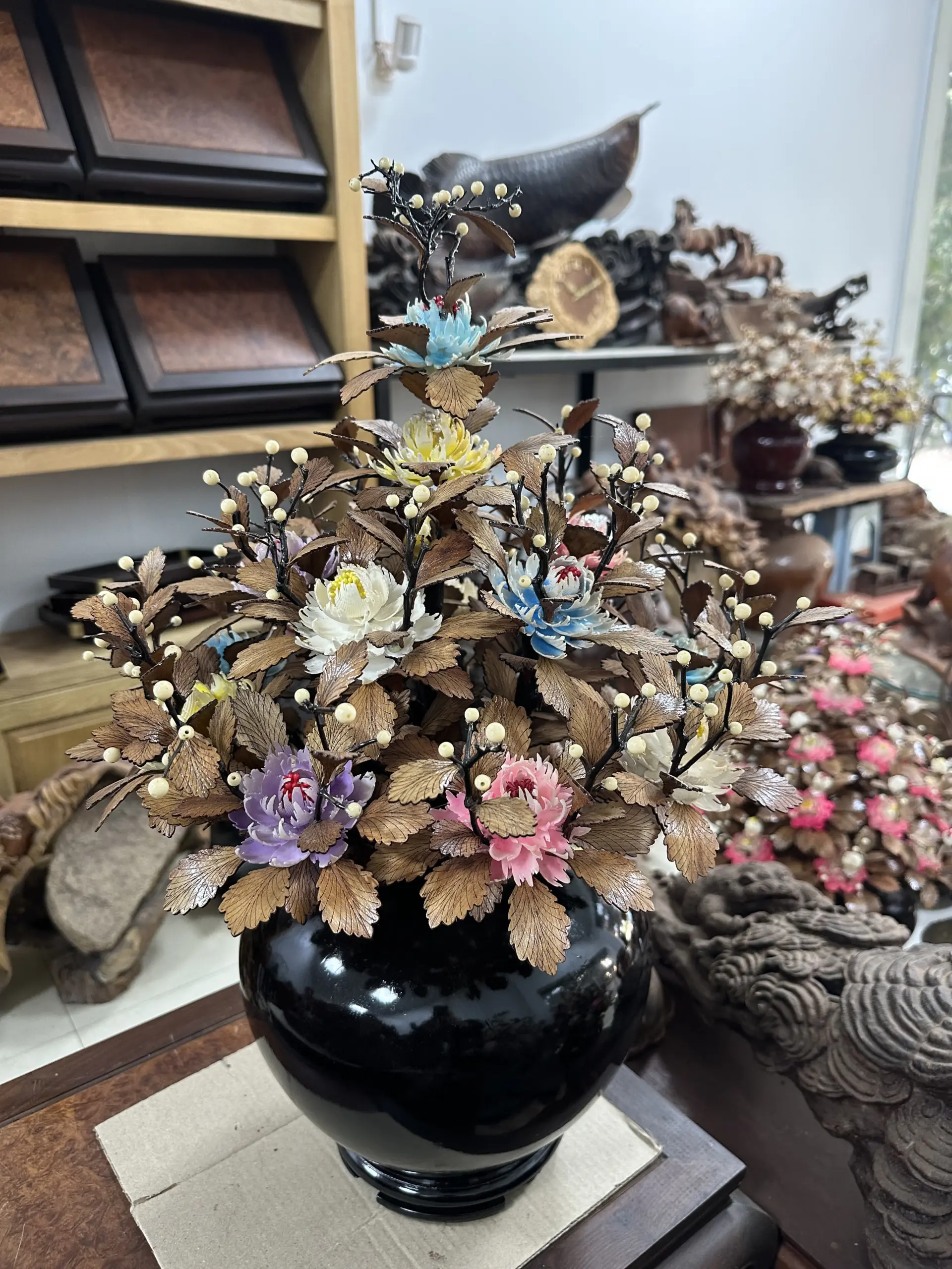 – Hoa làm từ ốc Indo nhập khẩu