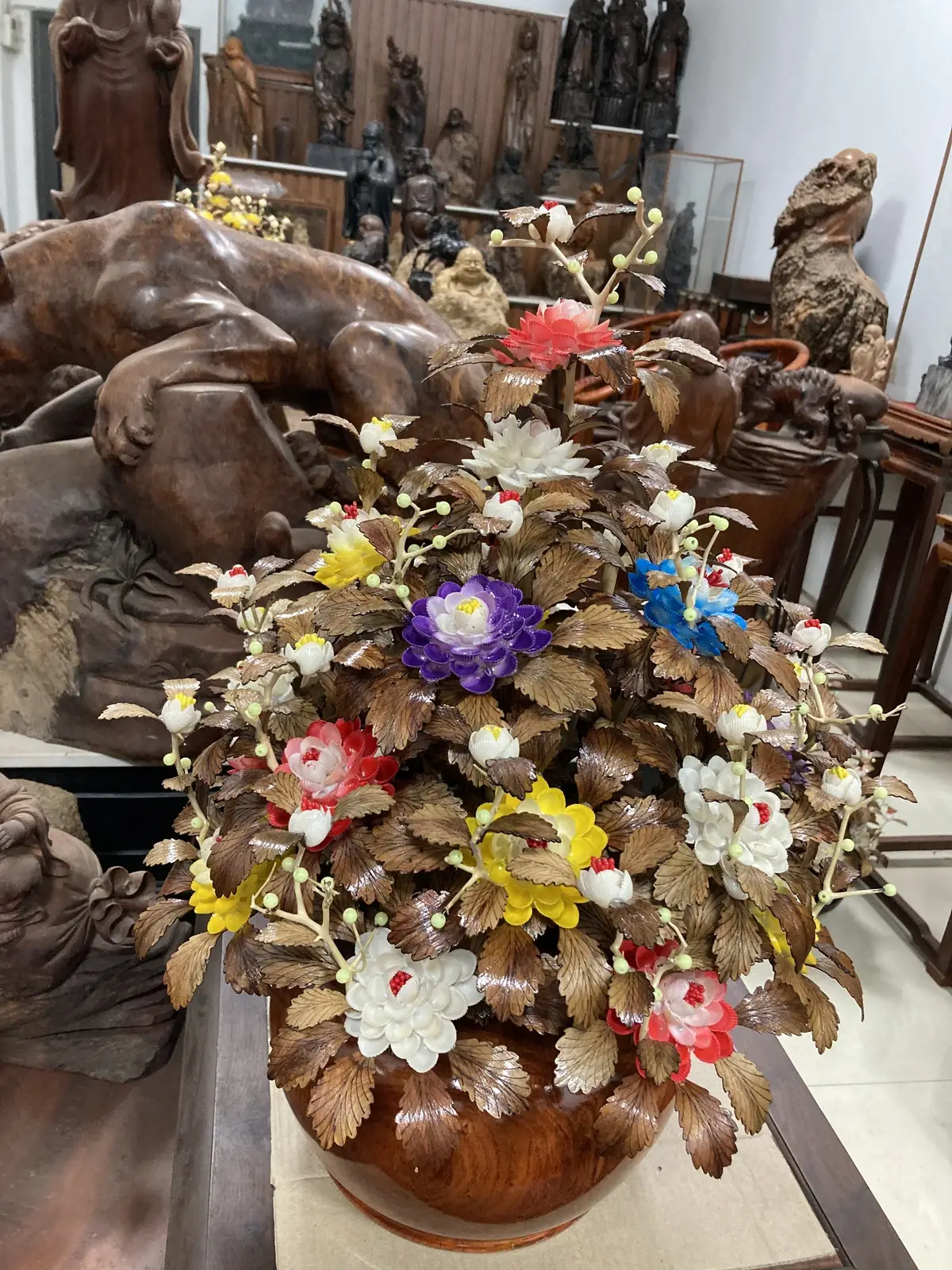 Bình Hoa Ngũ Sắc– Lá Gỗ Sưa, Bình Gỗ Hương Đá G20