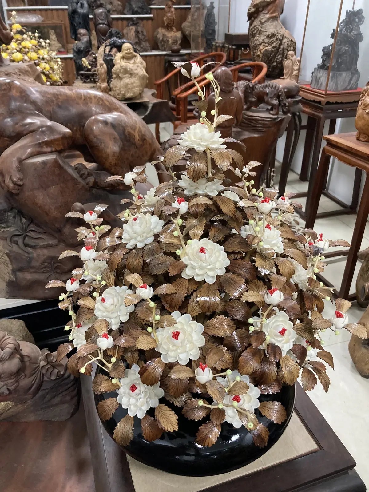 Bình Hoa Trắng Ban Mai Lá Gỗ Sưa, Bình Cẩm Tây Bắc G22