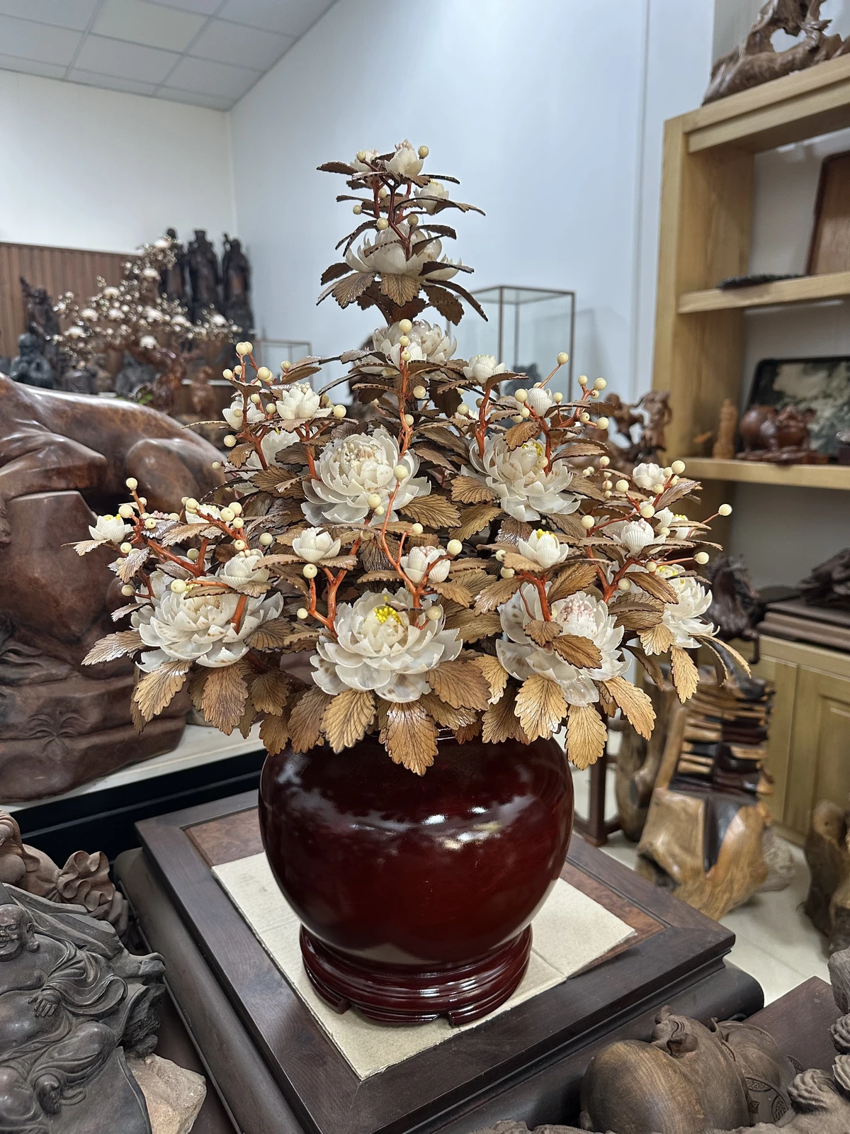 – Hoa làm từ ốc Indo nhập khẩu