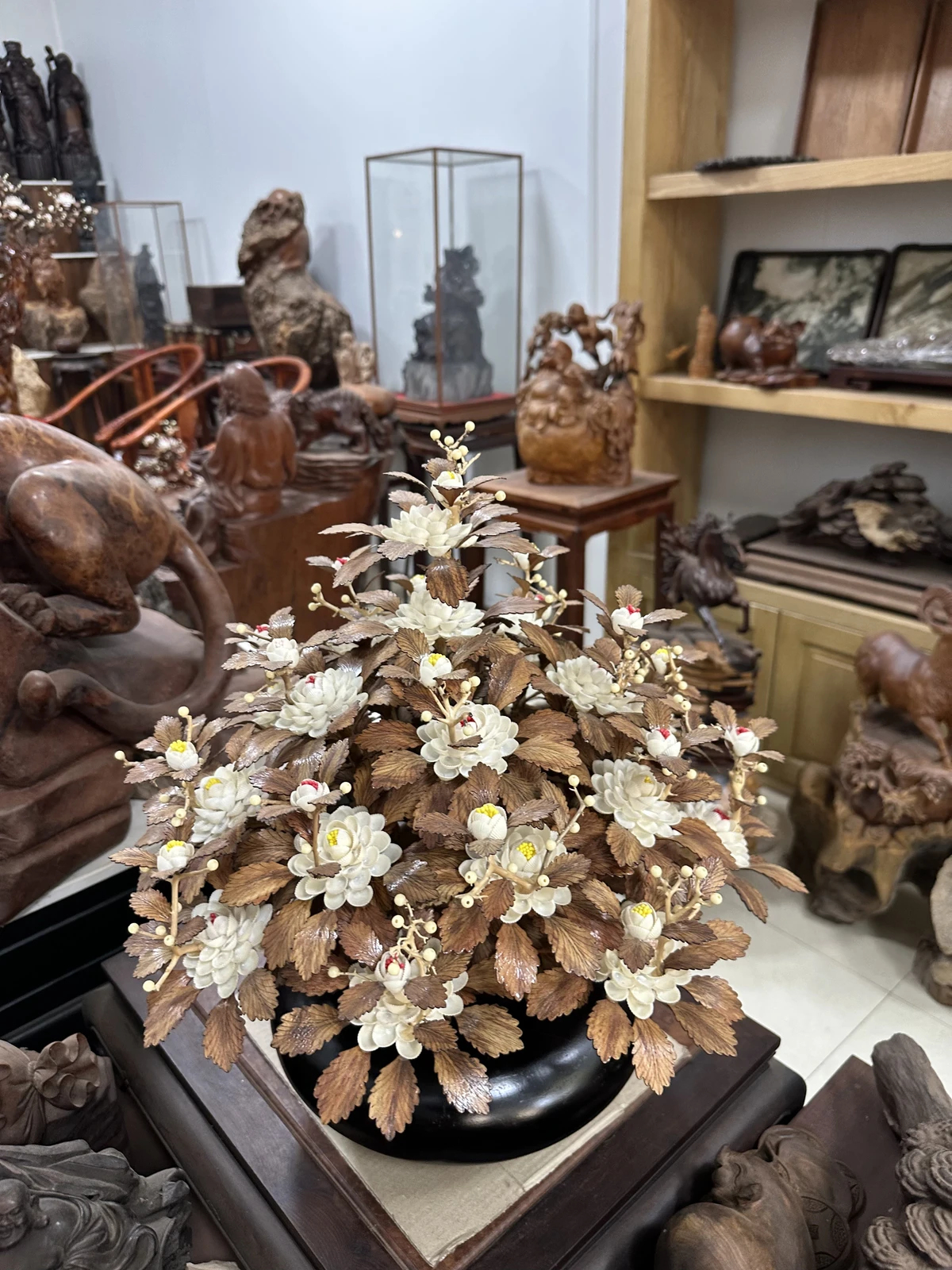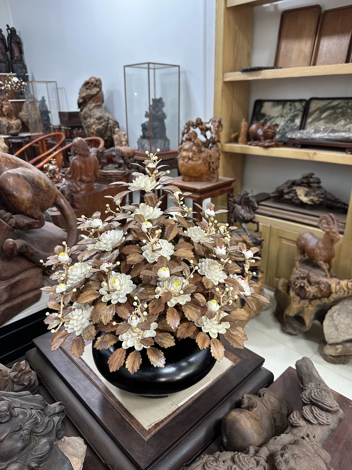 Bình Hoa Trắng Ban Mai Lá Gỗ Sưa, Bình Gỗ Cẩm Tây Bắc MQ10