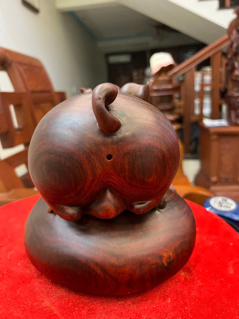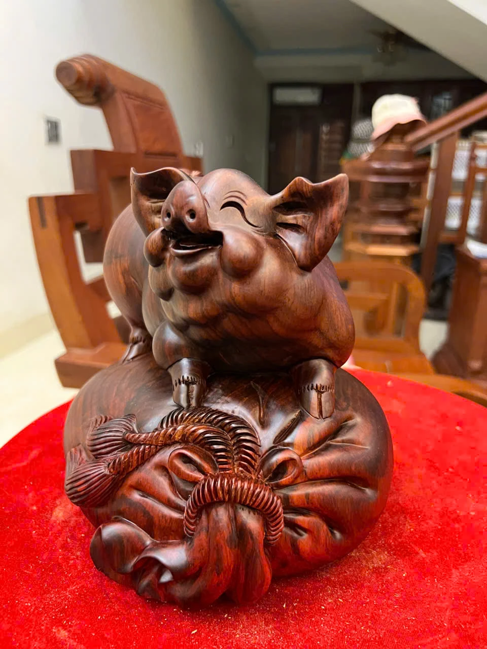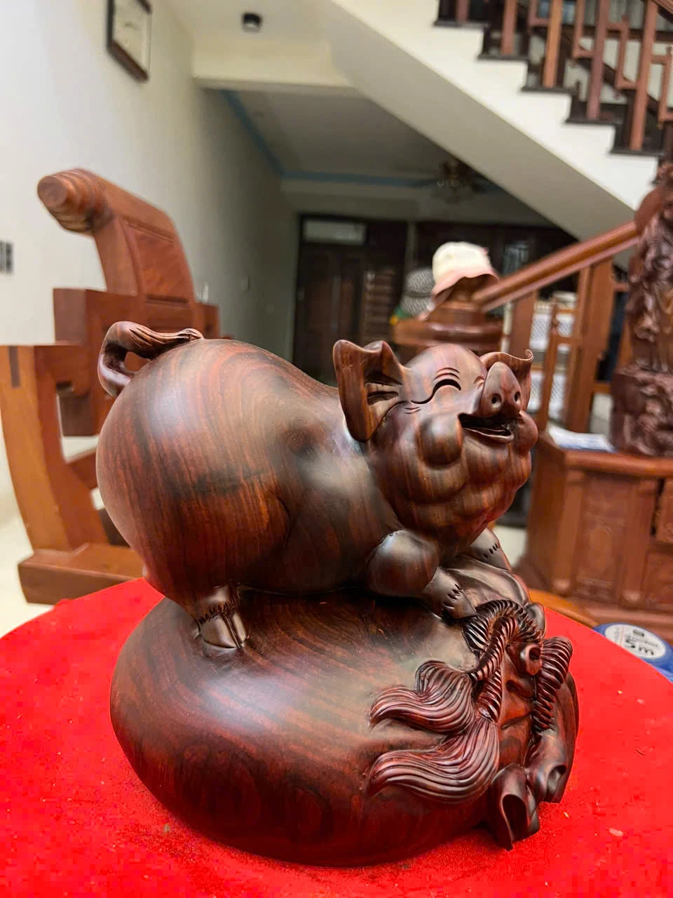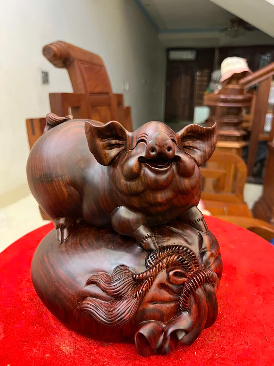 Tượng Heo Gỗ Trắc Việt Liền Khối Cao 19, Ngang 21, Sâu 18.