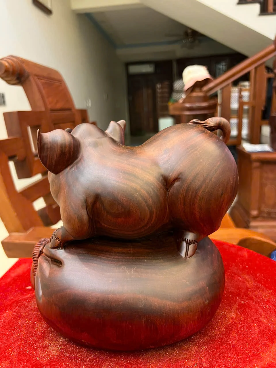 Tượng Heo Gỗ Trắc Việt Liền Khối Cao 19, Ngang 21, Sâu 18